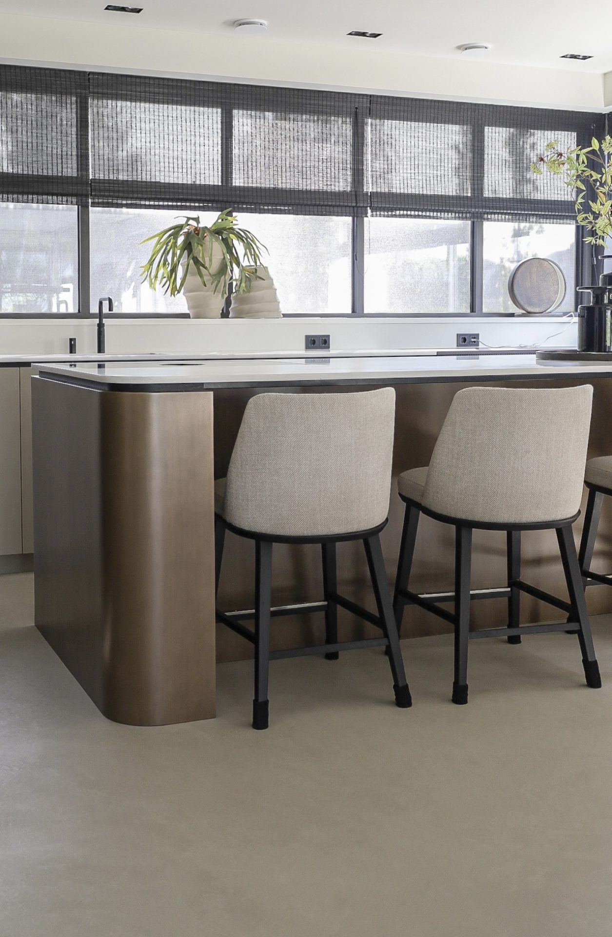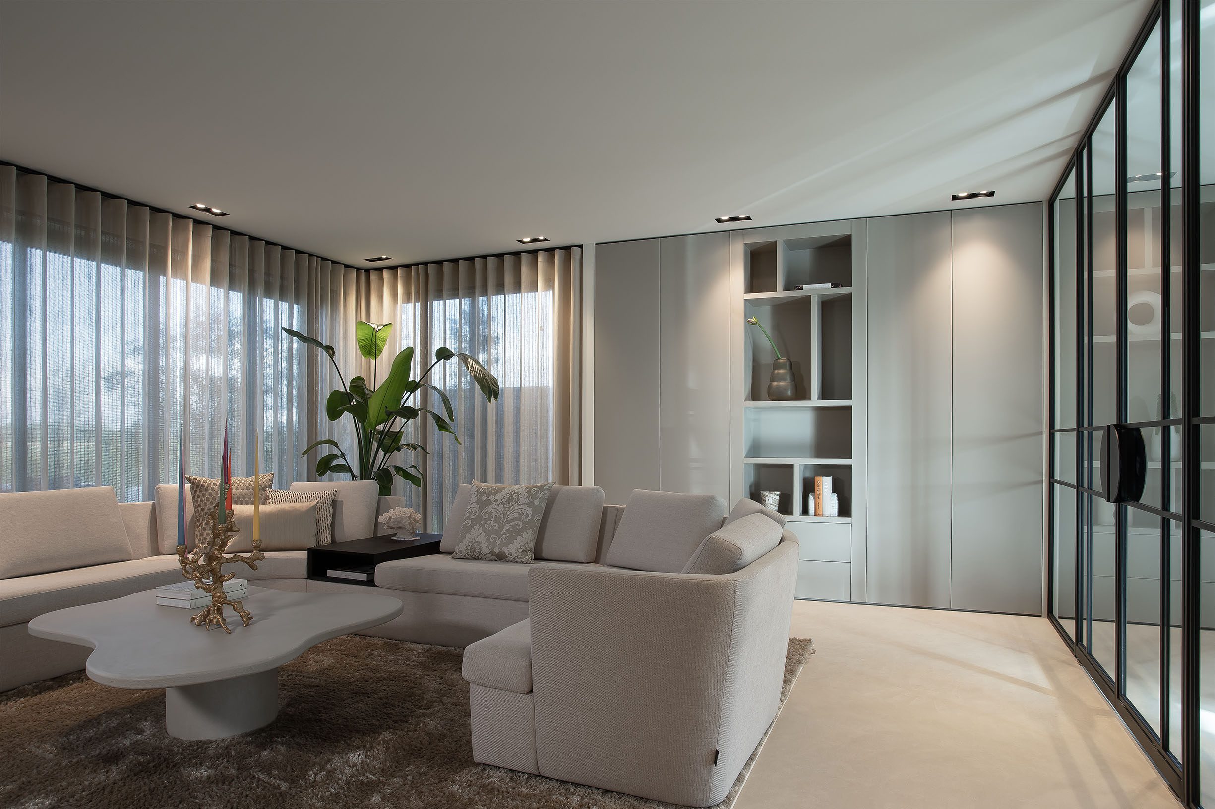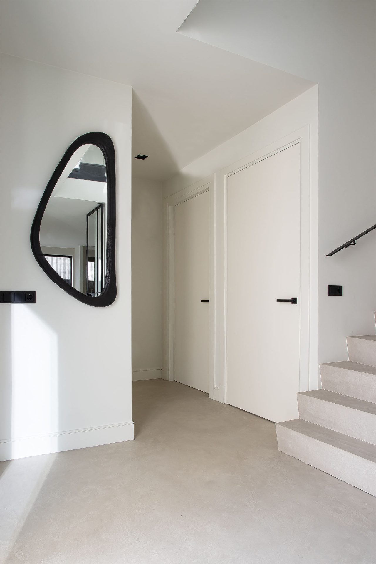 Villa Maartensdijk combineert minimalistisch design met natuurlijke materialen en functionele details. Met een organisch afgewerkte tafel, een trap met microcement en stijlvolle badkamers straalt het interieur luxe en comfort uit in een strak en tijdloos ontwerp.