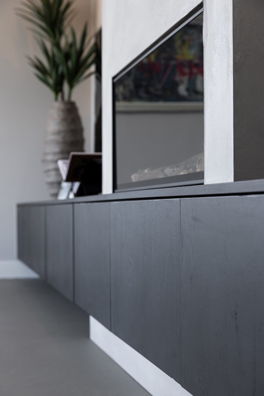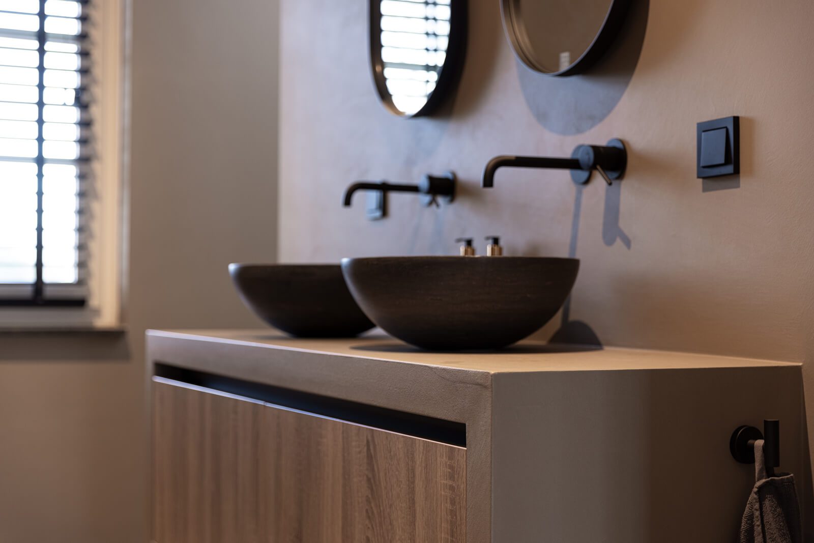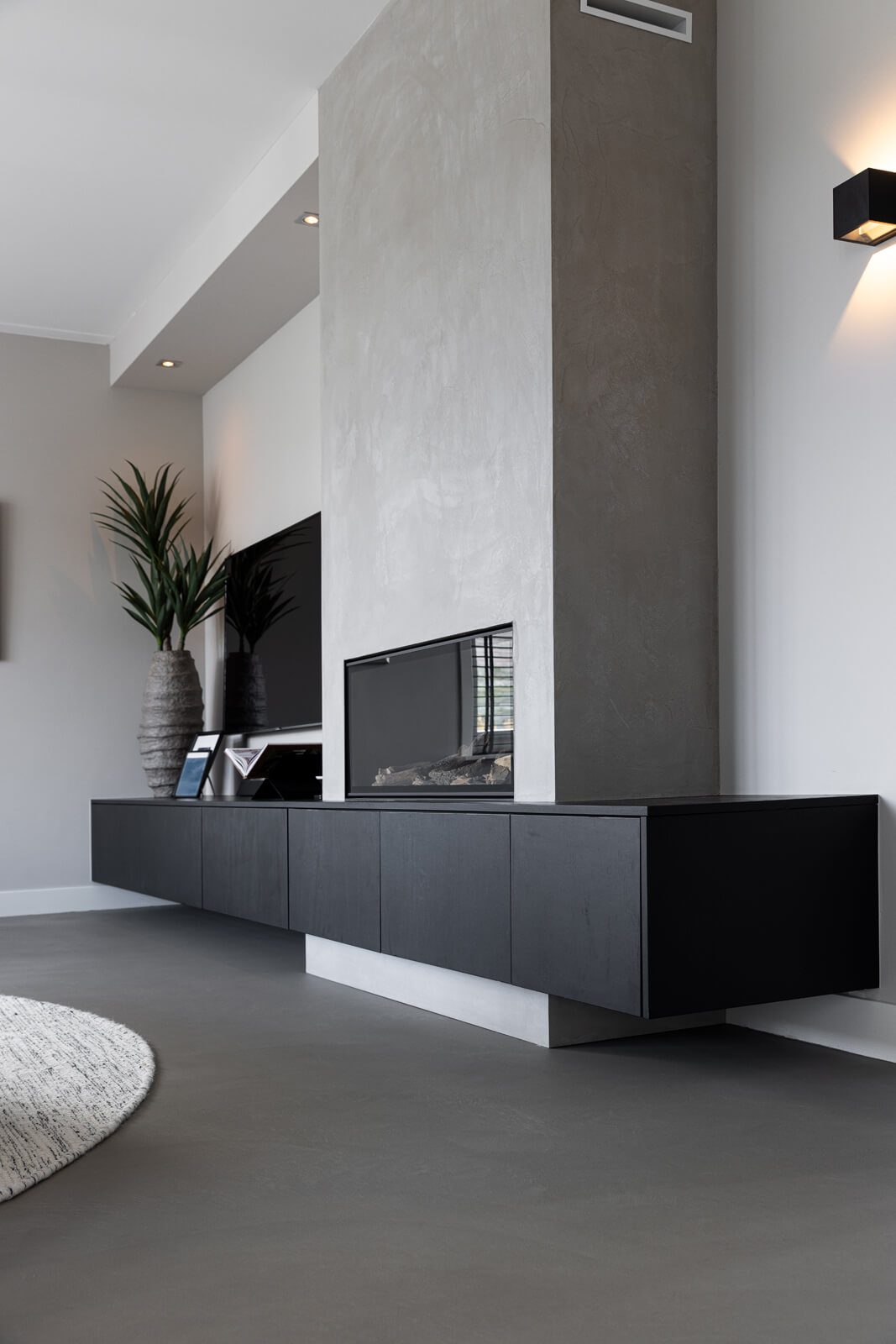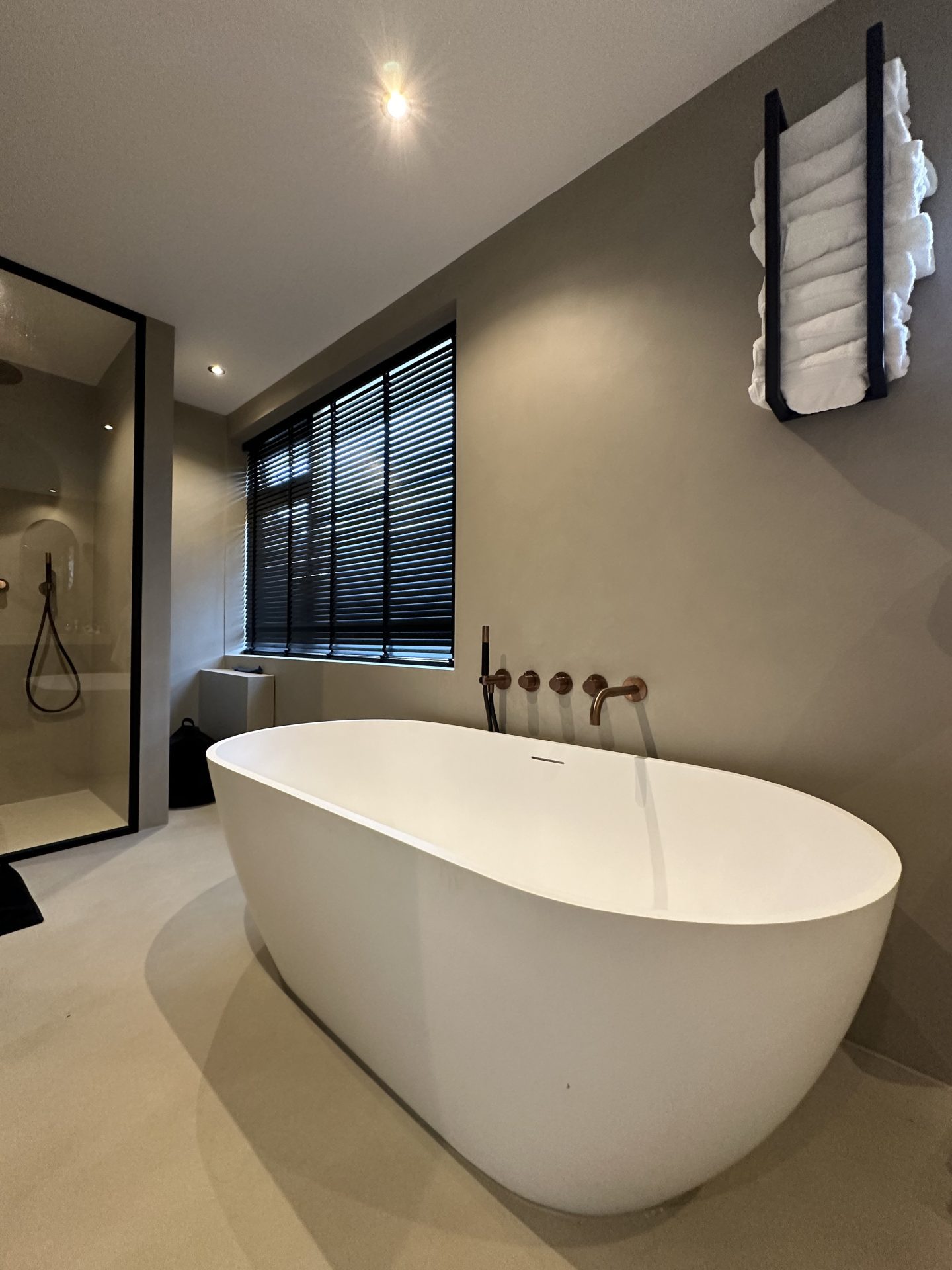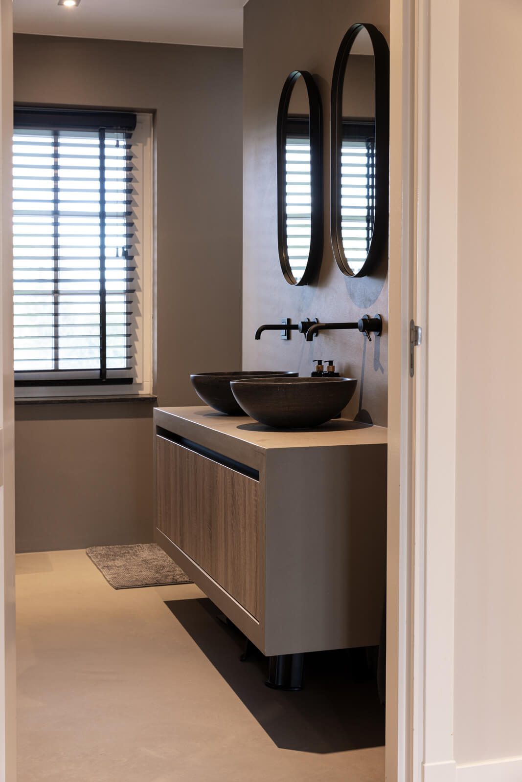 In Hoevelaken hebben we een moderne woning voorzien van luxe afwerkingen. De twee badkamers zijn volledig afgewerkt met microcement op wanden, vloeren en meubels, net als de wanden en vloeren van drie toiletten. De begane grond is uitgerust met een strakke Groundstone gietvloer, terwijl de open haard een verfijnde uitstraling kreeg met Marmorino designstuc. Het resultaat is een harmonieus geheel van hoogwaardige materialen en naadloze afwerking.