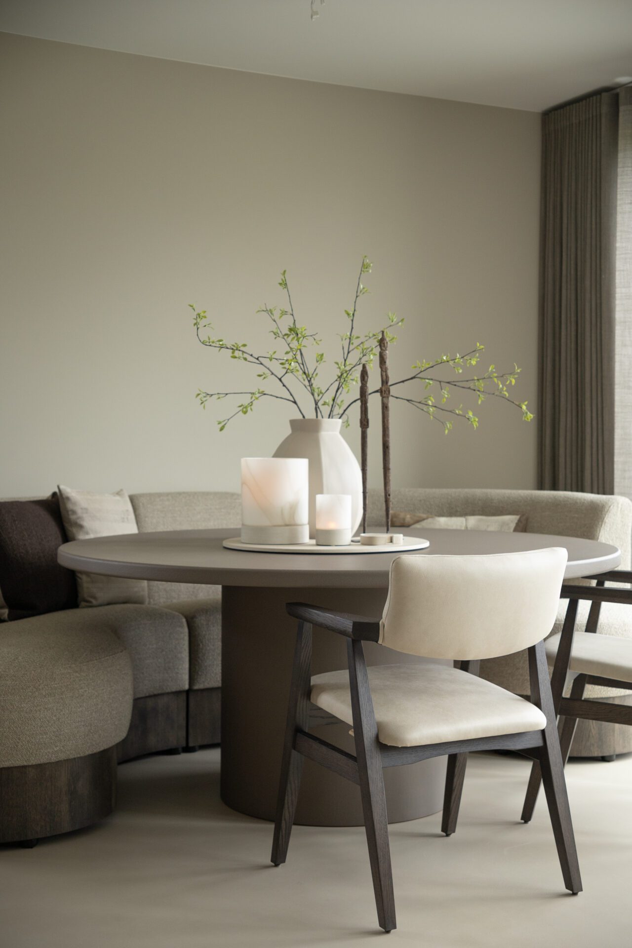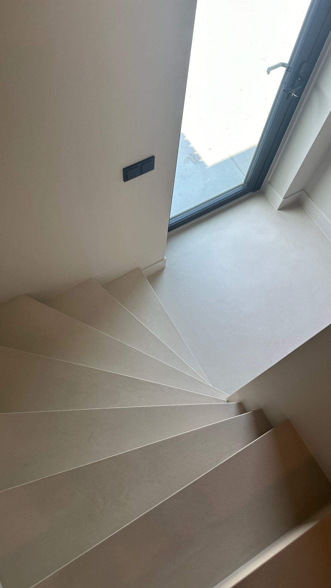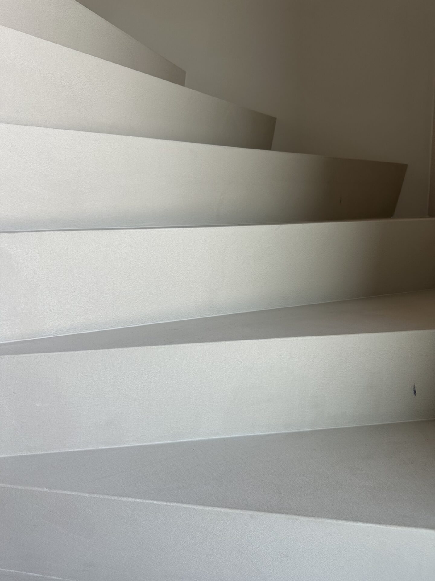 Voor een Woonhuis in Lunteren zijn de vloeren afgewerkt met een strakke gietvloer die de ruimte een moderne en tijdloze uitstraling geeft. De badkamer is zowel op de vloer als de wanden volledig voorzien van microcement, wat zorgt voor een naadloze en sfeervolle afwerking. De twee trappen naar de kelder en verdieping zijn eveneens afgewerkt in microcement, waardoor er een mooie doorgaande lijn ontstaat door het gehele huis. Als finishing touch is er een maatwerk eettafel in beton stuc gerealiseerd, die het interieur een uniek en persoonlijk karakter geeft.