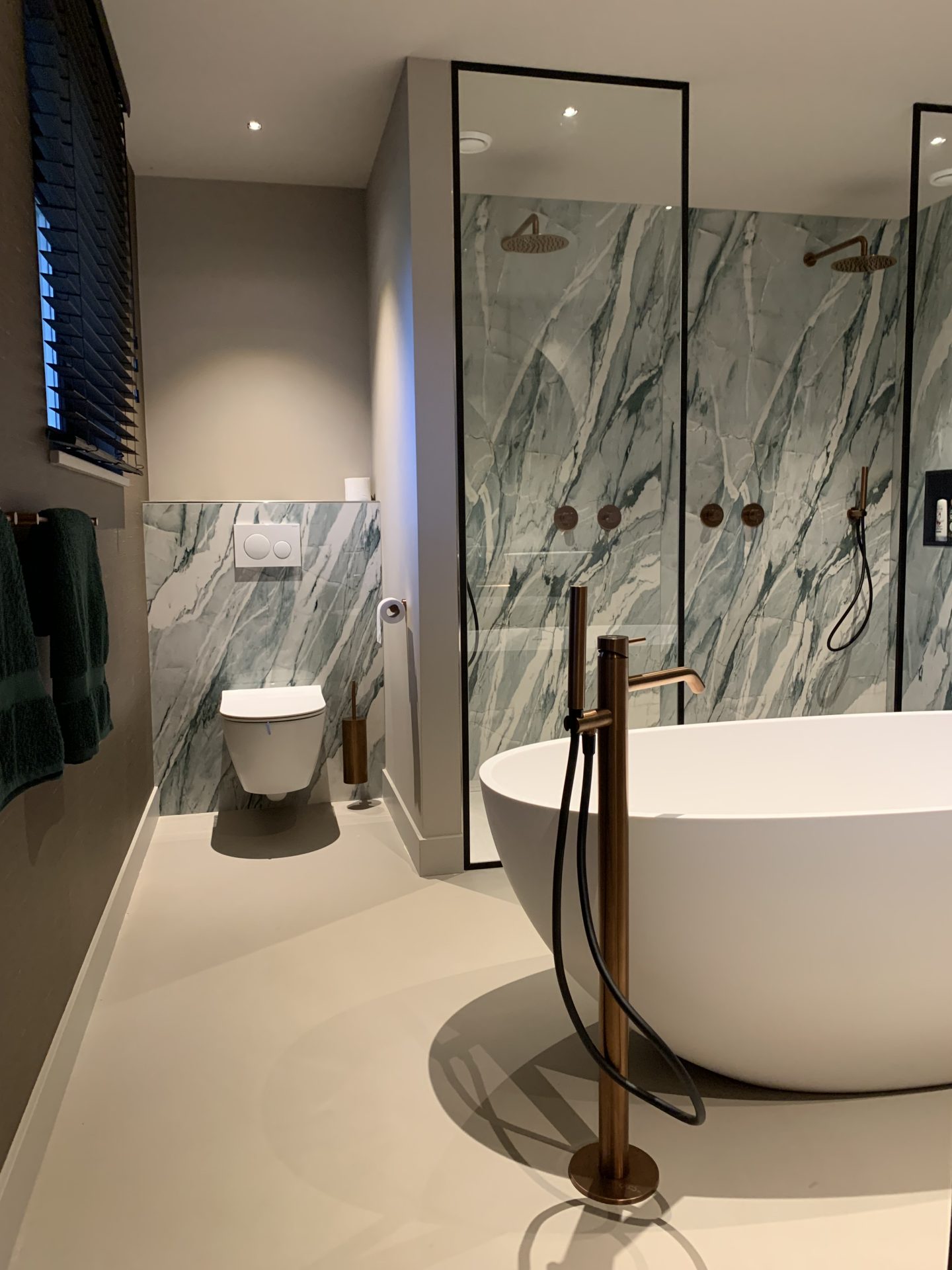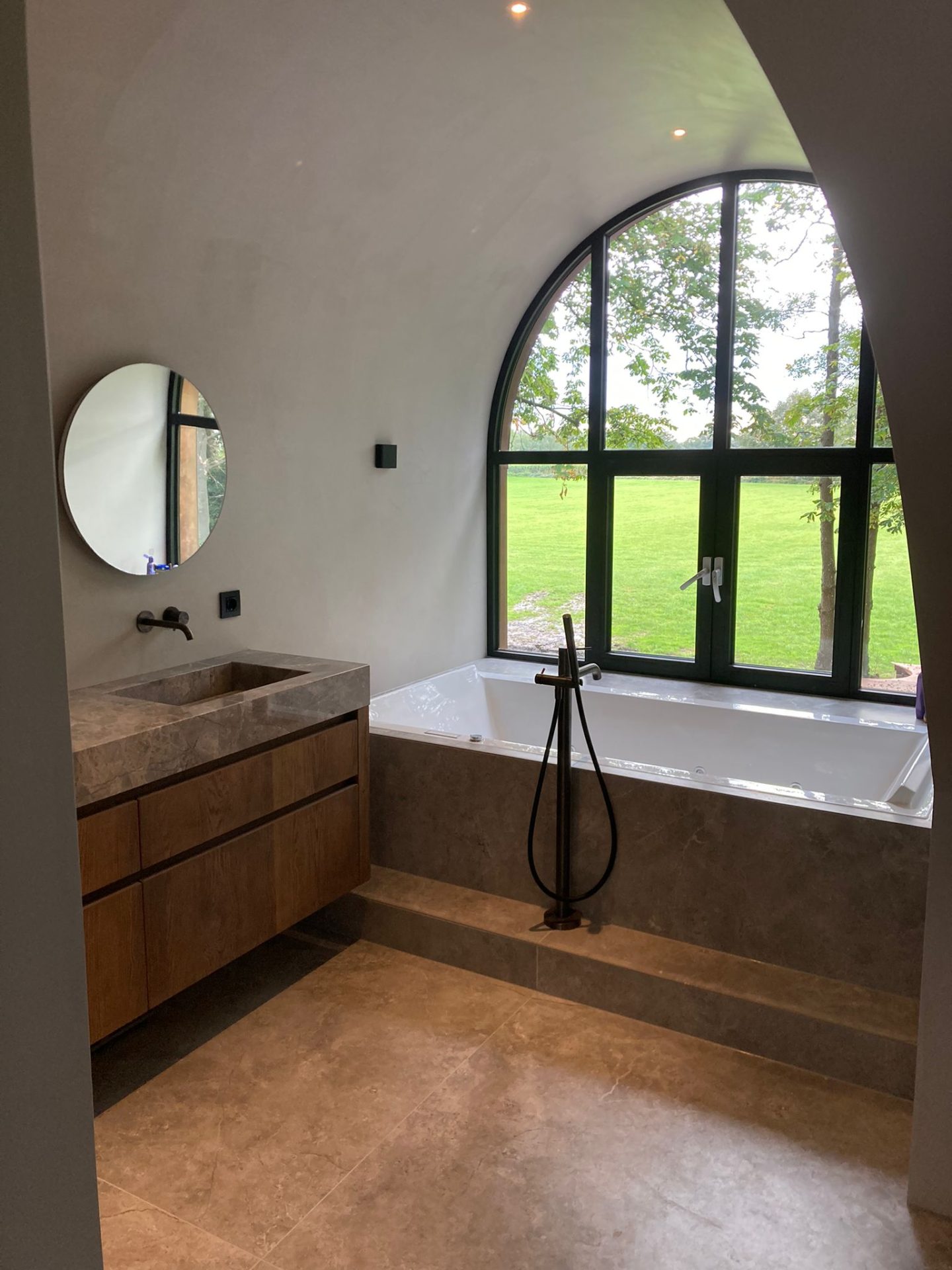 Bij Groundstone ontwerpen we badkamers die perfect aansluiten op jouw wensen en stijl. Van strakke, moderne betonlook wanden tot maatwerkmeubels die naadloos in je badkamer passen – elk detail wordt met zorg uitgekozen. Of je nu op zoek bent naar een robuuste, industriële uitstraling of een warme, natuurlijke sfeer, wij creëren een badkamer die niet alleen praktisch is, maar ook een oase van rust en luxe.